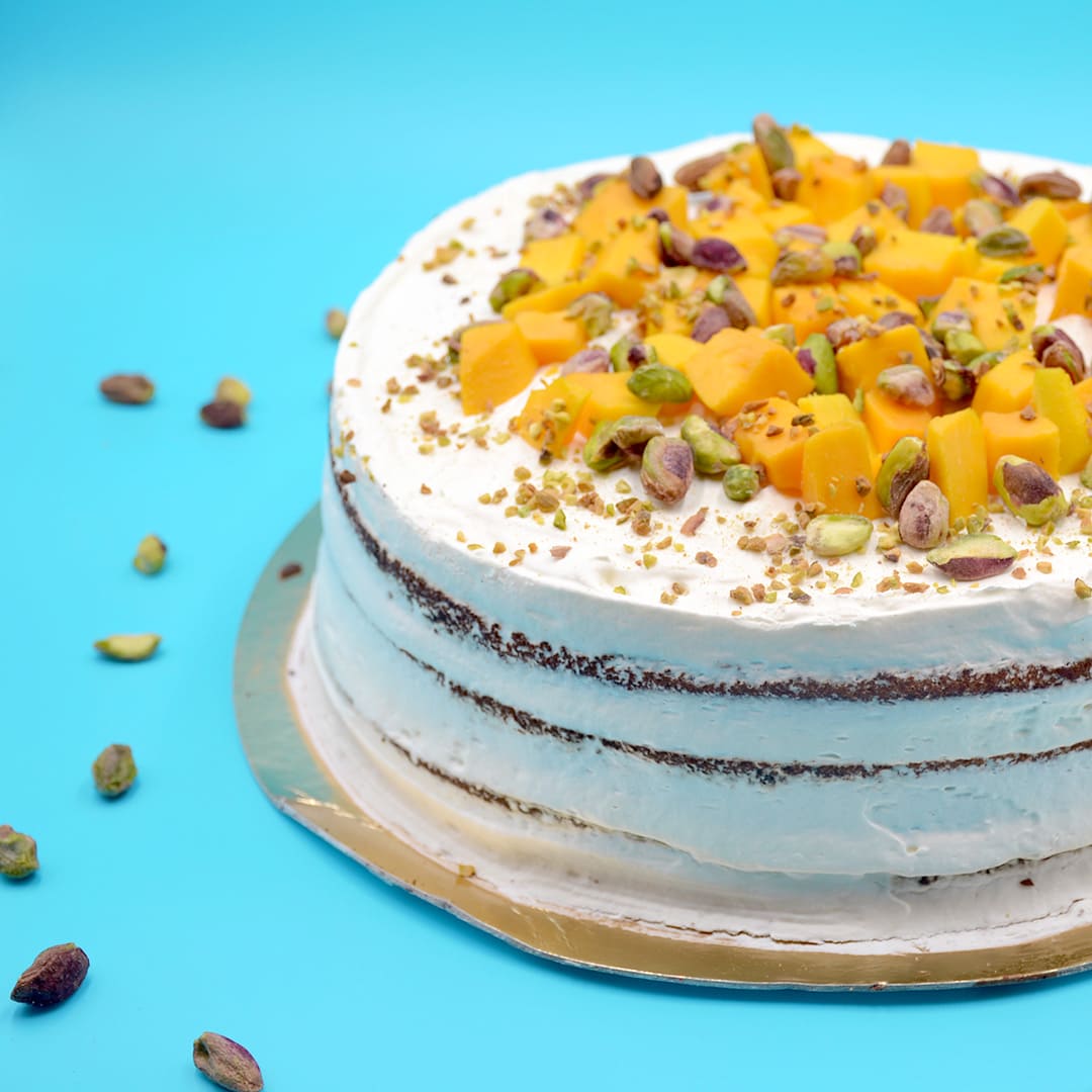Cada tarta se prepara de manera artesanal, sin conservantes y con la calidad que caracteriza a La Petite Sara. La decoración final, con trocitos de mango fresco y virutas de chocolate, le aporta un acabado tan atractivo como delicioso.