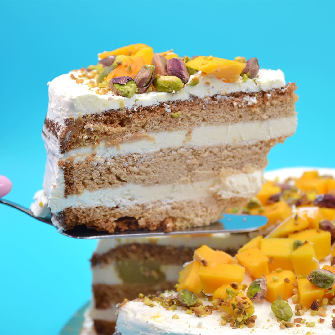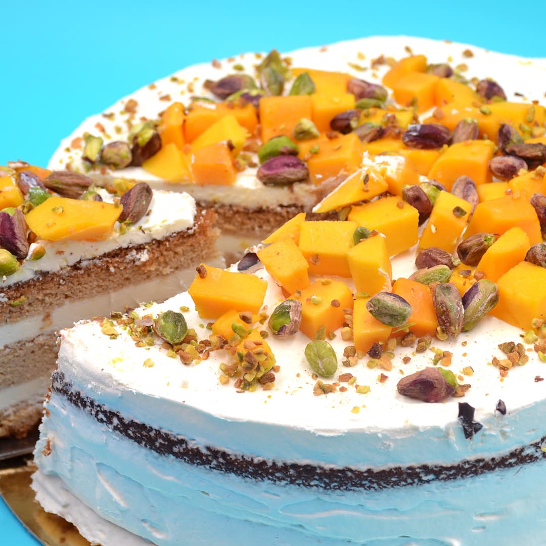 Nuestra tarta artesanal de chocolate blanco y mango se elabora con ingredientes frescos y seleccionados. El bizcocho es ligero y esponjoso, mientras que la capa de mousse combina el chocolate blanco con puré natural de mango, logrando una textura cremosa y un equilibrio perfecto entre dulzura y acidez.